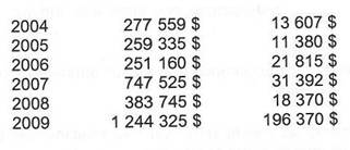 e) d’octobre 2008 à février 2009, le payeur avait un gros contrat à l’aréna de La Pocatière et en mai 2009 il a fait les travaux de maçonnerie à l’extérieur;