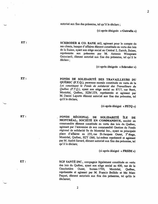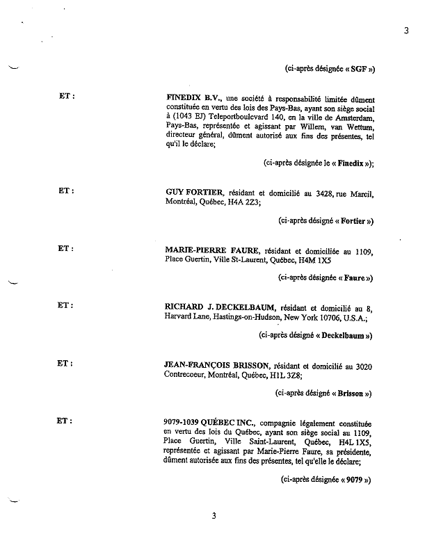 1.13          Lors de la première ronde de financement effectuée en 1998, le Fonds régional de solidarité de l’île de Montréal (Québec, Canada) (« FRSIM ») et le Fonds de Solidarité des travailleurs du Québec (F.T.Q.) (Québec, Canada) (« FSTQ ») ont participé à la souscription d’actions de catégorie A de Bagtech.